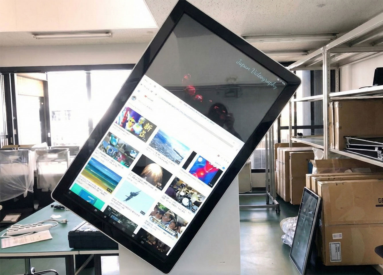 デジタルサイネージ用の液晶ディスプレイは、主に長時間の放映を想定された業務用ディスプレイを使用します。