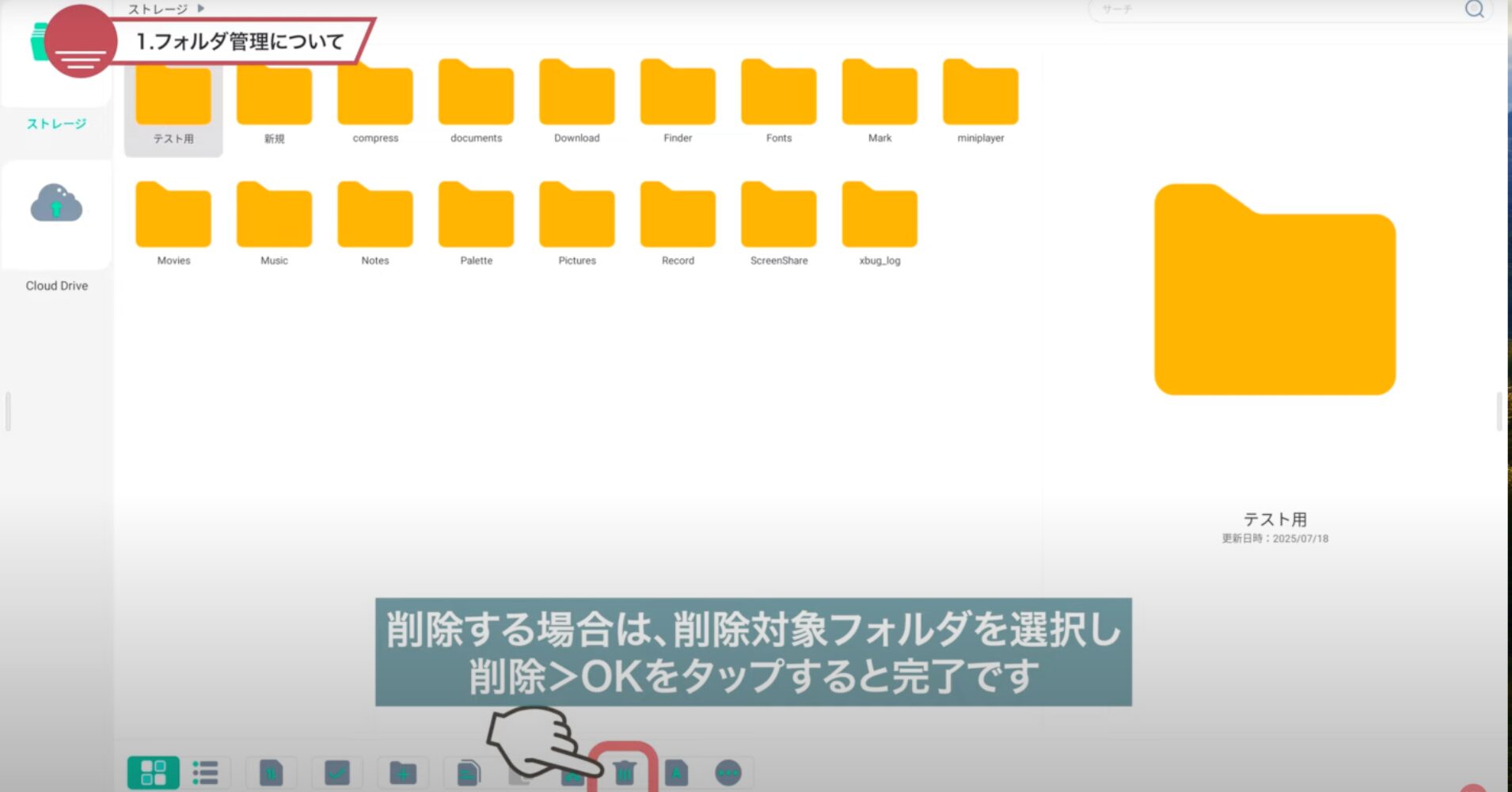 ファイルやフォルダは、タップして選択した後に「削除」をタップするだけで簡単に削除できます。
