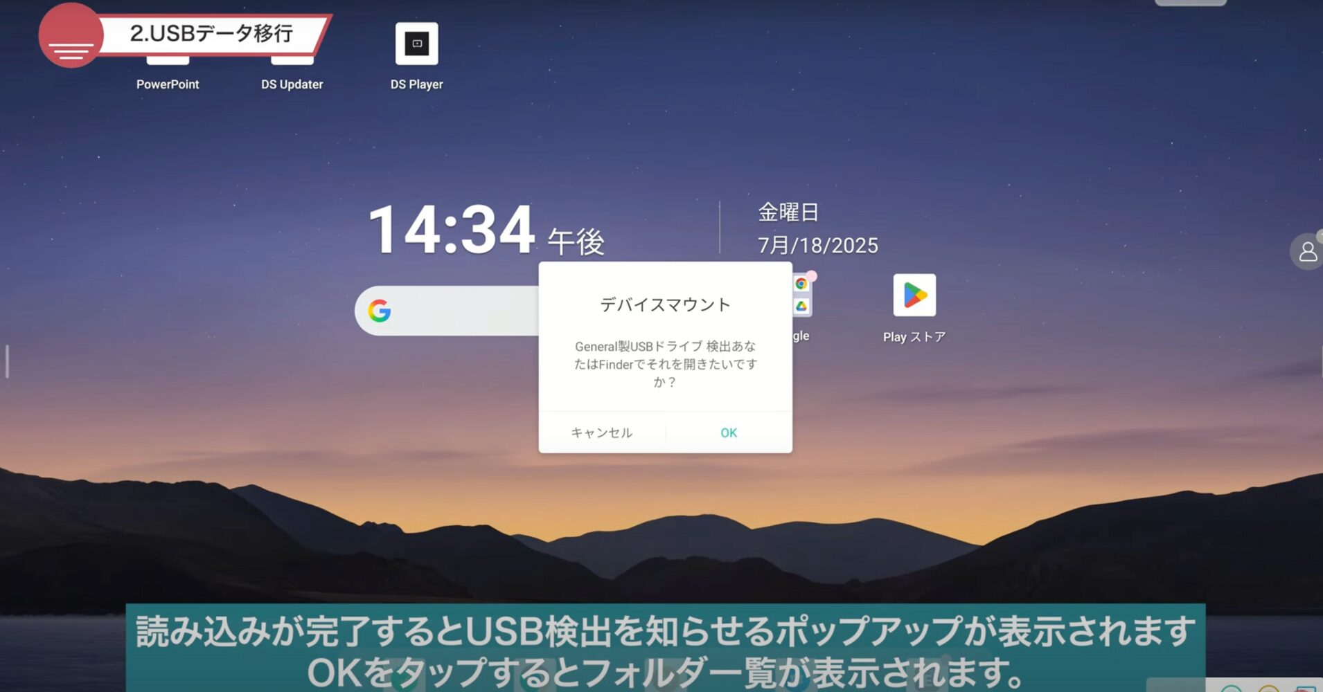 自動で読み込みが完了し、ポップアップが表示されます。「OK」をタップするだけで、すぐにUSB内のデータにアクセスできます。