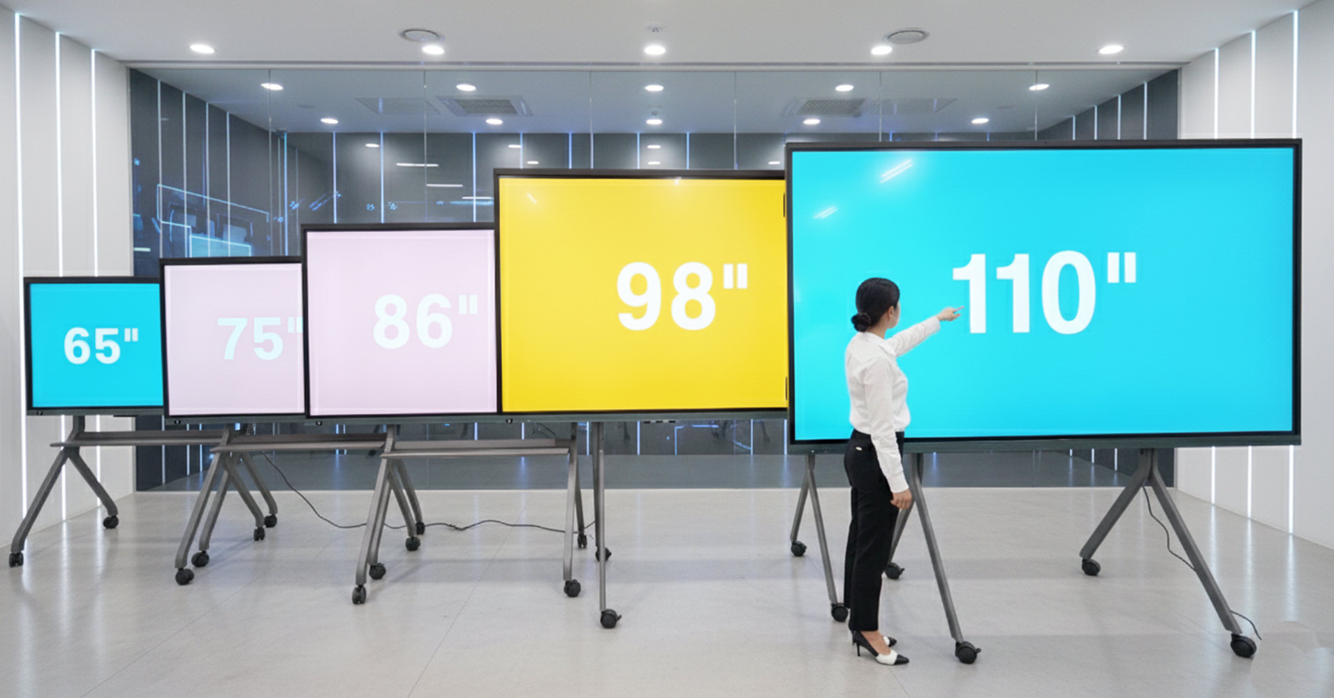 タッチディスプレイに対応した、大型電子黒板110インチ(画面表示域2439.5mm×1373.5mm)です。4Kデータ表示、Wi-Fi、LAN、Bluetoothに対応します。画面の最大輝度は450cd/㎡。ファイルデータの共有や会議等の使用に加え、インタラクティブに授業を行うために開発されたデジタルサイネージです。